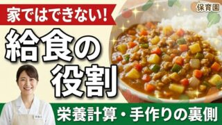 毎日子どもたちが楽しみにしている「保育園の給食」。 実は、そこには驚くほどの栄養計算と、現場スタッフの深い愛情が詰まっています。 本動画では、給食が果たす役割の「3つの柱」から、家庭でも大人気のカレーの秘密、さらには現場での徹底した安全管理とアレルギー対応まで、保育園給食の役割と重要性について解説しました!